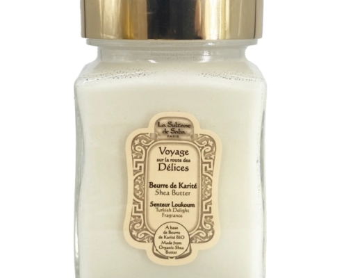 Másla Karité, Másla Karité, Péče o tělo, Péče o vlasy, Voyage Loukoum NOVINKA!100% máslo Karité La Sultane de Saba, delikátně provoněné přírodními esencemi květů pomeranče. Máslo Karité má regenerační a reparační účinky díky přirozenému obsahu vitamínů A, D, E a F. Máslo Karité zpevňuje, ochraňuje, vyživuje a zjemňuje pokožku. Nezbytné pro extrémně suchou pleť celého těla. 100% másla Karité La Sultane de Saba jsou zpracována v první kvalitě jakosti.
