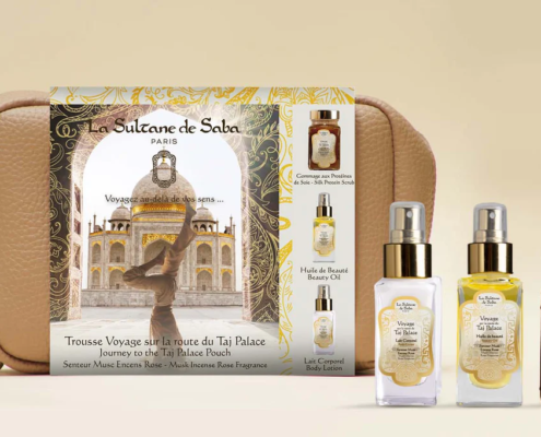Dárky pro NI, Doplňující produkty, Péče o tělo, Sady, Sady, Sady pro ženy, Tělo, Tipy na dárky, Voyage sur la route du Taj Palace NOVINKA!Sada obsahuje: Tělový olej Taj Palace 50 ml, Peeling s hedvábnými proteiny Taj Palace 50 ml, Tělové mléko 50 ml, Praktickou hygienickou taštičku La Sultane de Saba