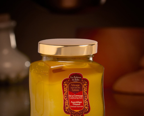 Péče o tělo, Tělový peeling, Voyage sur la route des Épices BEST-SELLERFantastický tělový peeling z mořské soli a přírodních esenciálních olejů zbavuje pokožku odumřelých buněk, zanechává ji rozjasněnou, vyživenou, hydratovanou a delikátně provoněnou. Po jeho použití již není třeba nanášet další přípravky na hydrataci. Je vhodný pro všechny typy pleti.