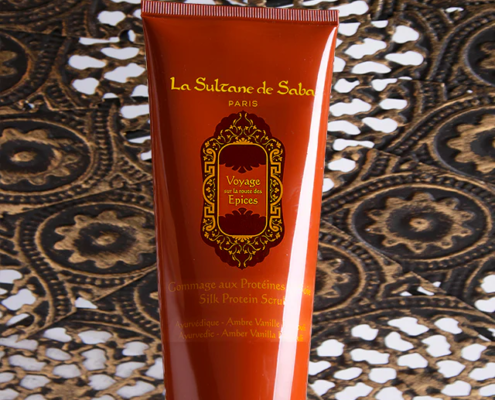 Dárky pro NI, Péče o tělo, Tělový peeling, Voyage sur la route des ÉpicesTělový peeling s proteiny hedvábí Ayurvédique zlepšuje prokrvení pokožky, odvodňuje a díky aminokyselinám obsažených v proteinech hedvábí pokožku dokonale vyhladí.