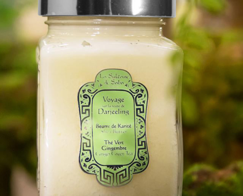 Másla Karité, Másla Karité, Péče o tělo, Péče o vlasy, Voyage sur la route de Darjeeling100% máslo Karité La Sultane de Saba, delikátně provoněné přírodními esencemi zeleného čaje a zázvoru. Máslo Karité má regenerační a reparační účinky díky přirozenému obsahu vitamínů A, D, E a F. Máslo Karité zpevňuje, ochraňuje, vyživuje a zjemňuje pokožku. Nezbytné pro extrémně suchou pleť celého těla. 100% másla Karité La Sultane de Saba jsou zpracována v první kvalitě jakosti.